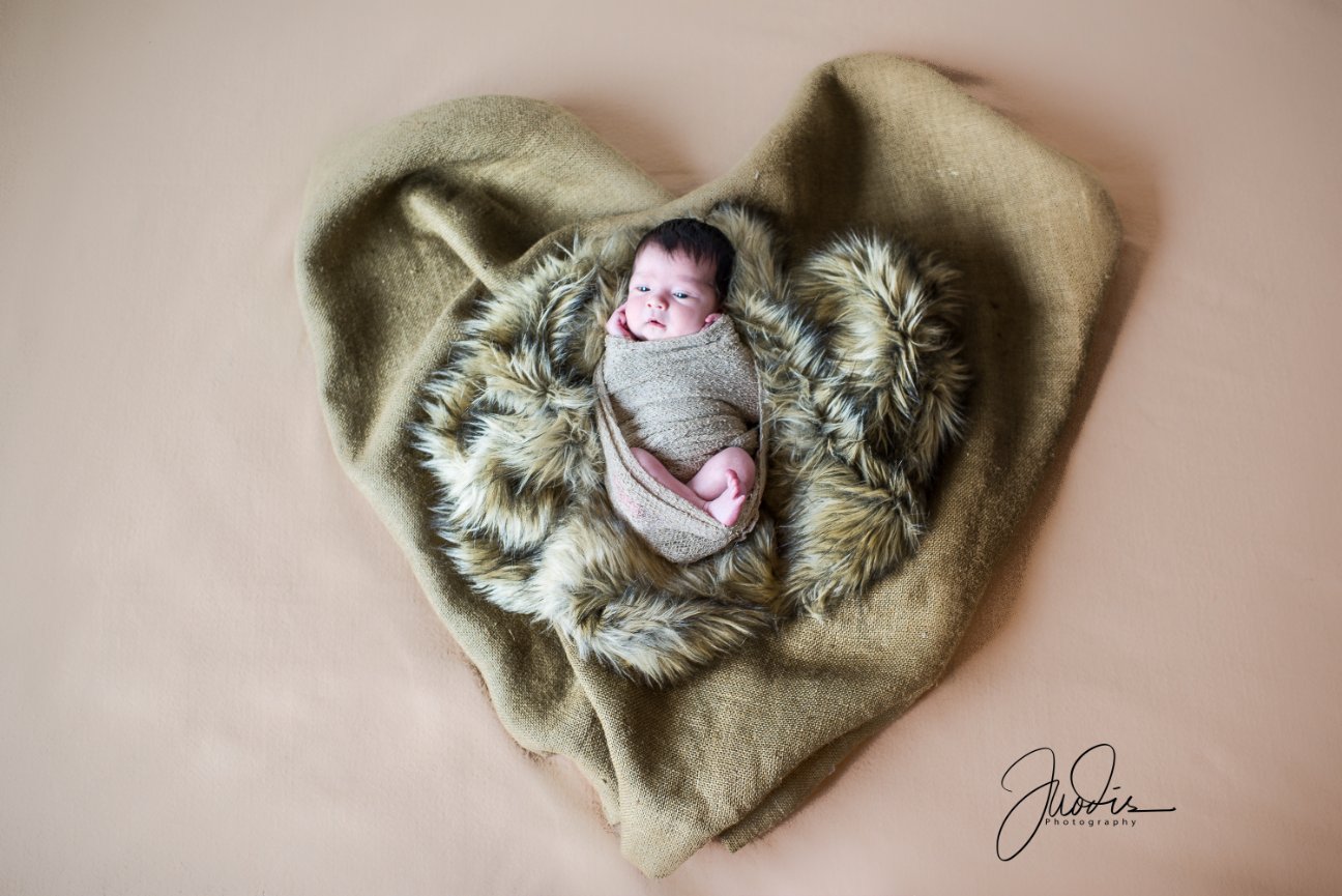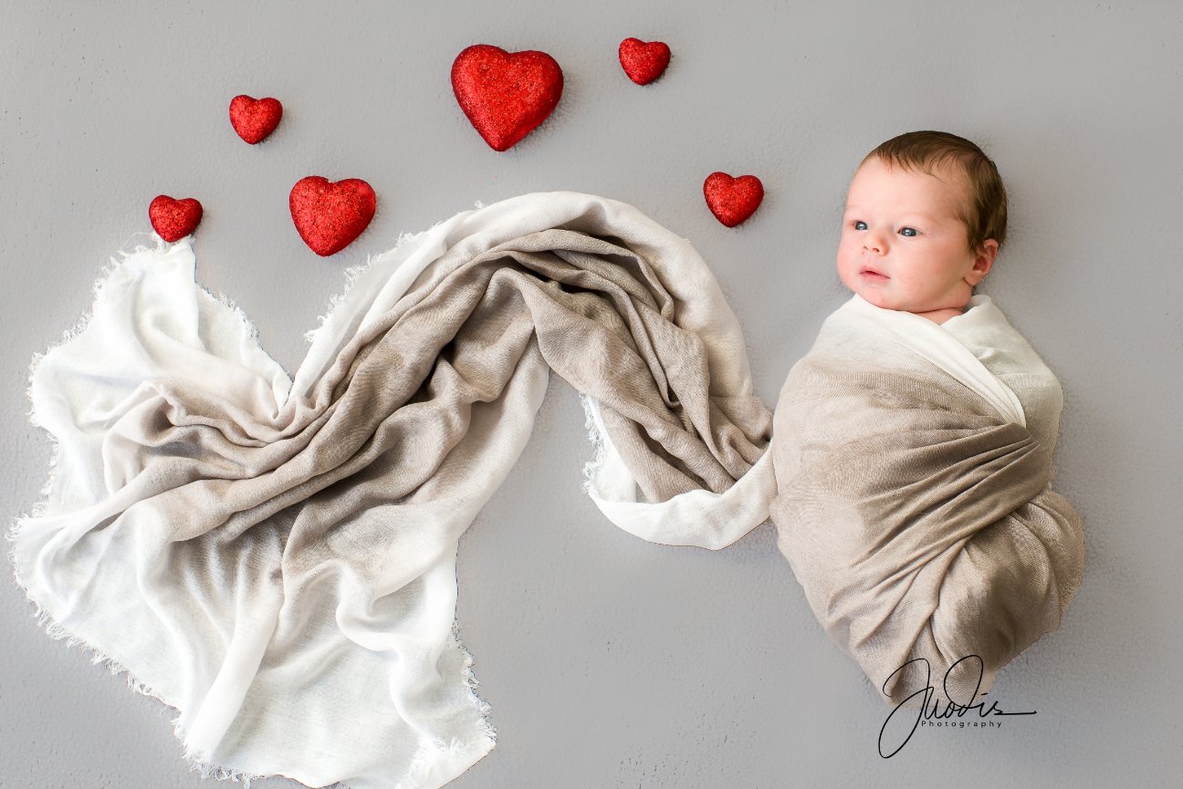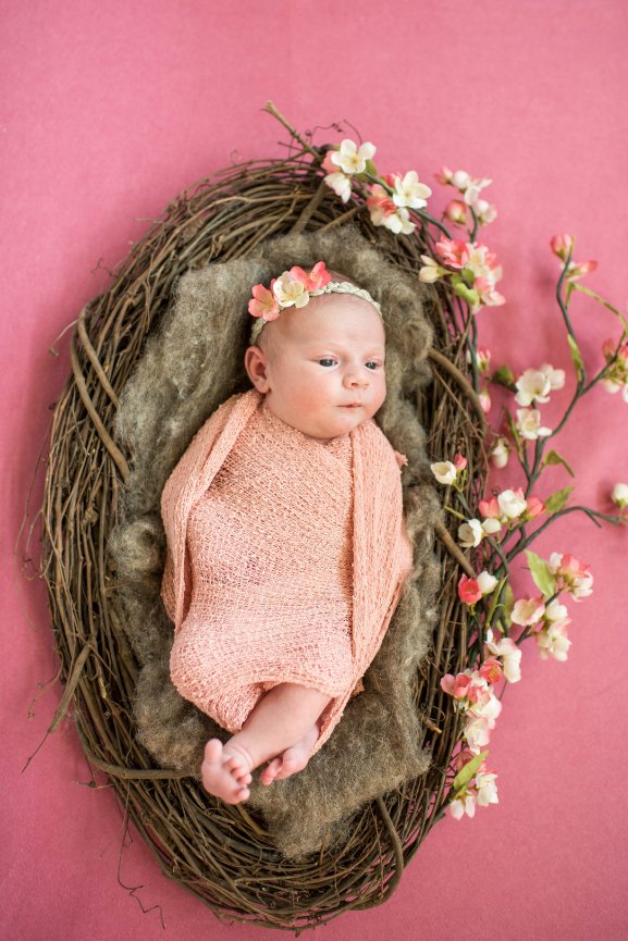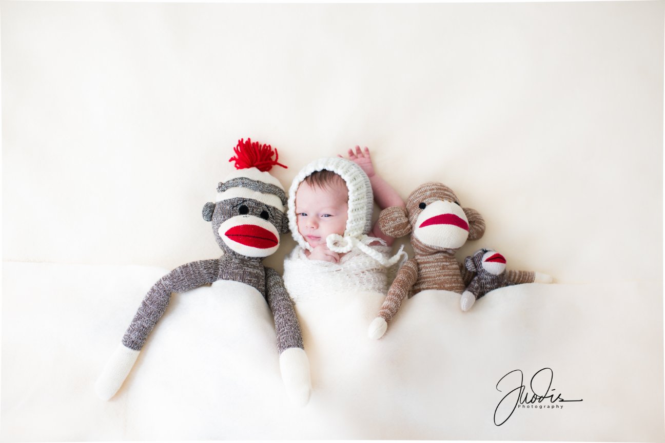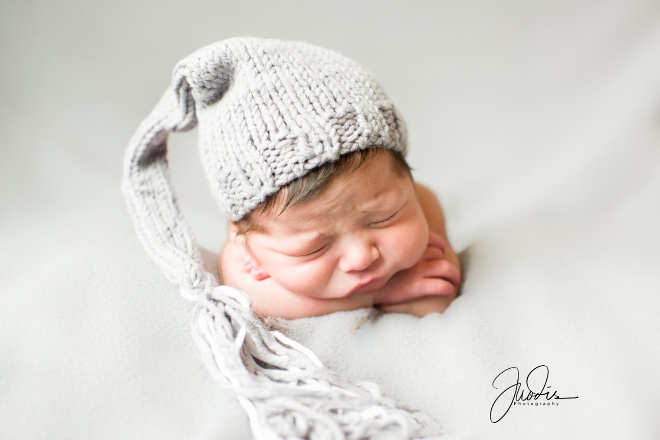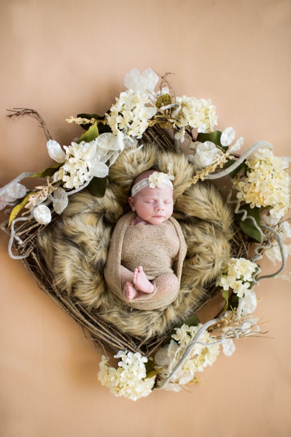 1. Posed – Typically done within the first 2 weeks of birth when the baby is very sleepy and “mold-able,” this type of session focuses on shots of the baby looking perfect, usually in blankets, wraps, and with adorable props. This type of session can last up to 4 hours including feeding and potty breaks in addition to posing.