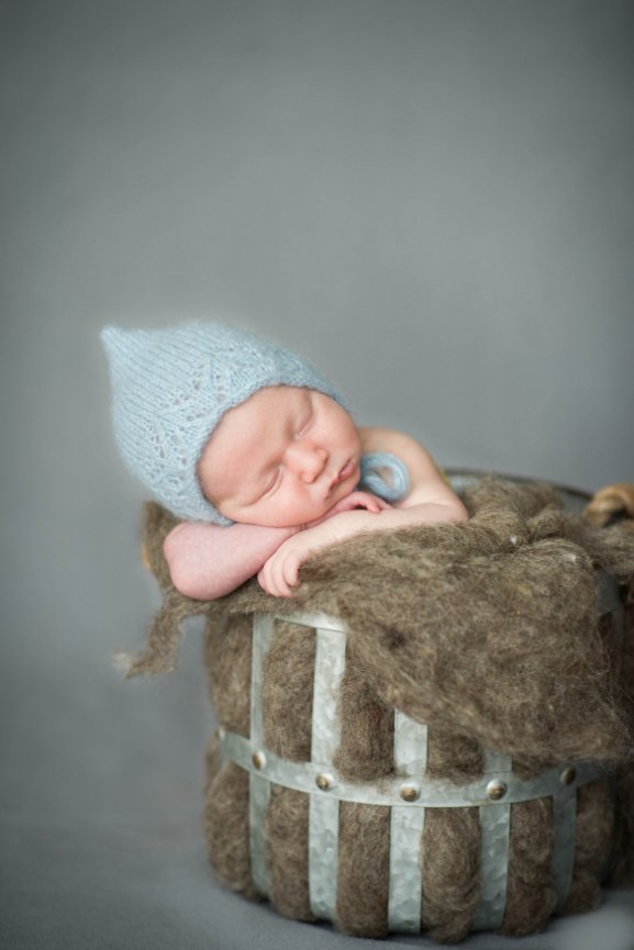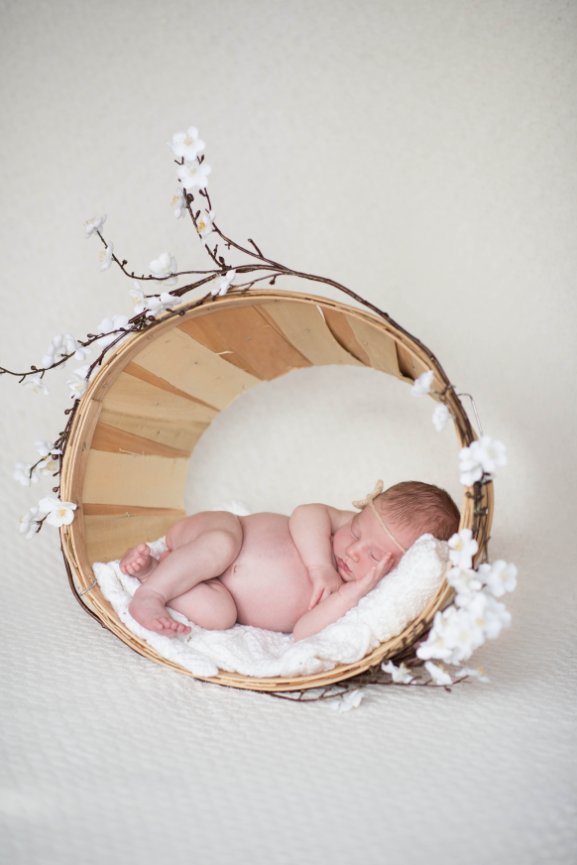 I like to communicate ideas prior to the photo session. Some parents want their babies dressed in cute outfits, while other prefer nude or partially clothed portraits. We should agree ahead of time on what clothing should be worn and props will be used. Pictures should be simple, with props and clothing enhancing the composition. Natural light should be used whenever possible.